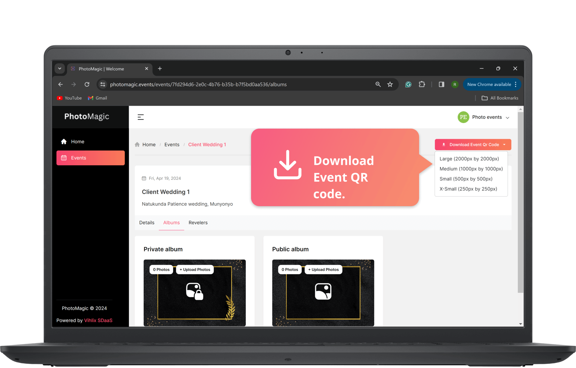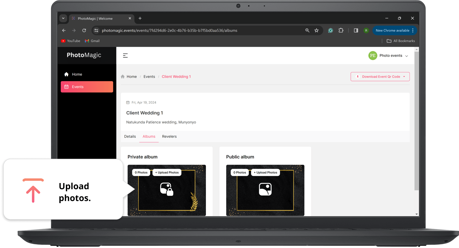 Create a new event on PhotoMagic, stating the title, date, and clearly describing the event for the revelers